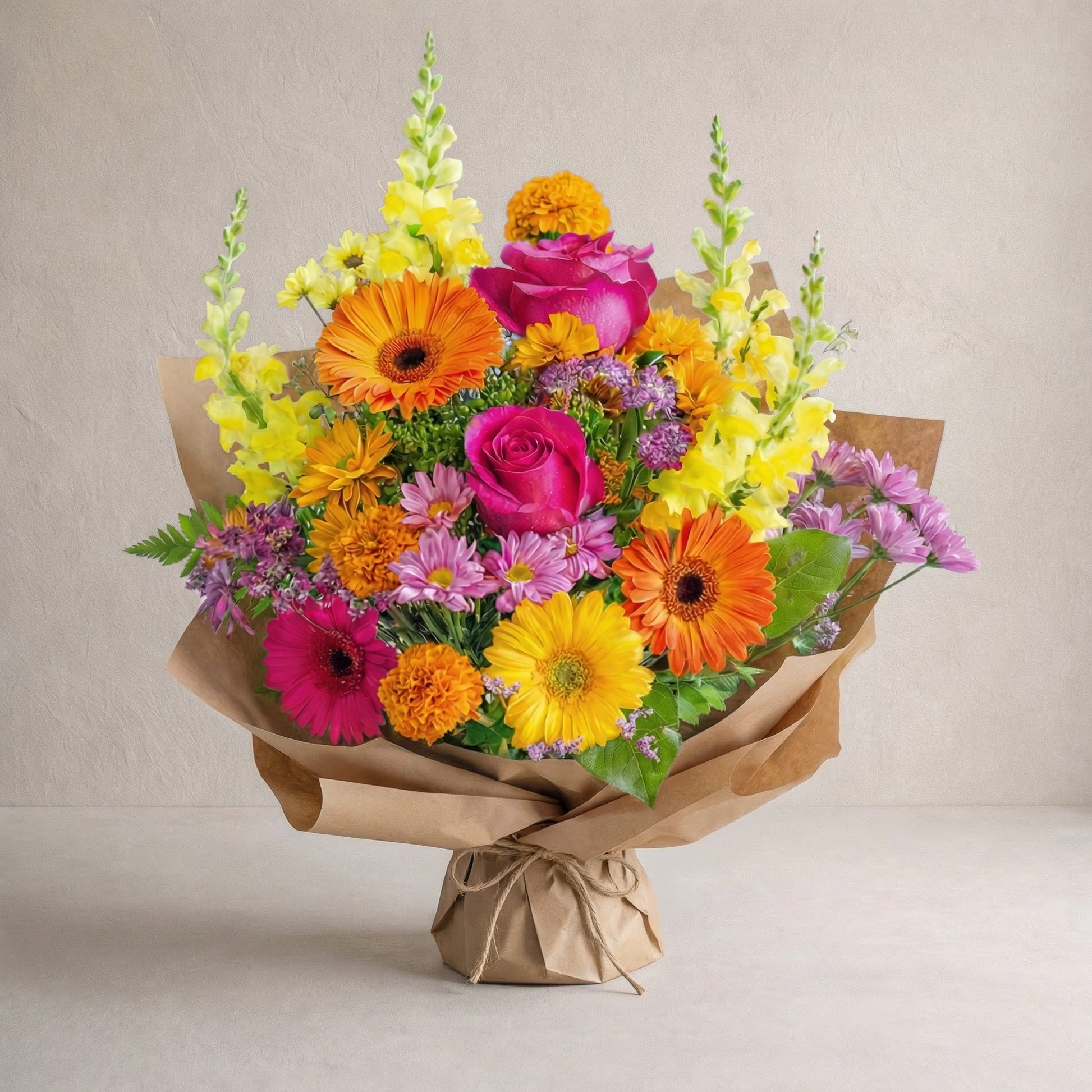 Presentation: Available as a Hand-Tied Bouquet wrapped in our premium kraft paper, or upgrade to our Signature Vase Arrangement to have it arrive fully styled in a glass cylinder.